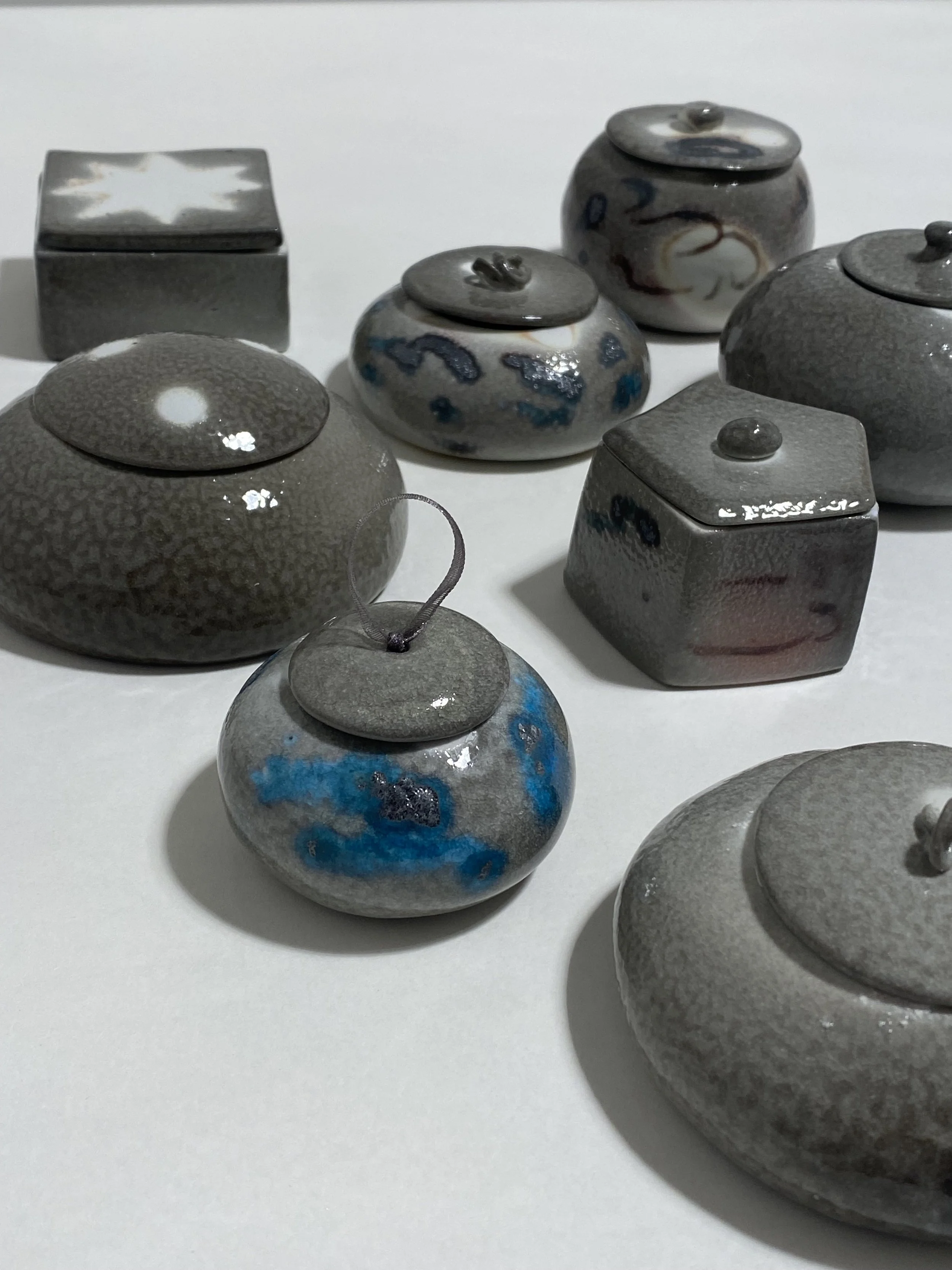 Reliquaries, porcelain, cone 10 soda fired reduction
